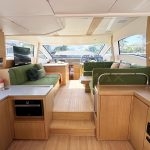 É uma embarcação que combina sofisticação, potência e tecnologia de ponta. Com linhas modernas e espaços integrados, oferece ambientes amplos e iluminados para desfrutar de momentos únicos a bordo. São 3 suítes completas, cozinha gourmet integrada ao deck de popa e uma área externa equipada com plataforma submersível, grill e iluminação subaquática, proporcionando experiências de lazer inesquecíveis.