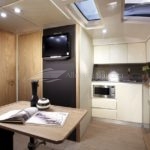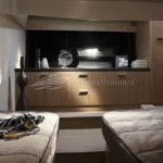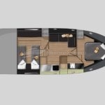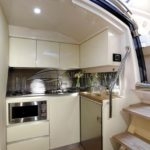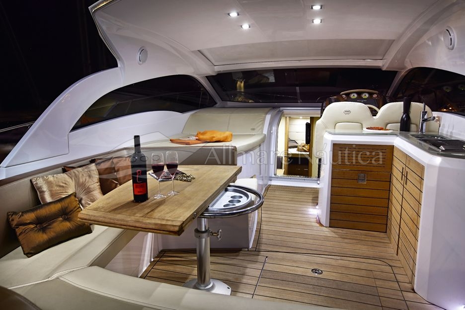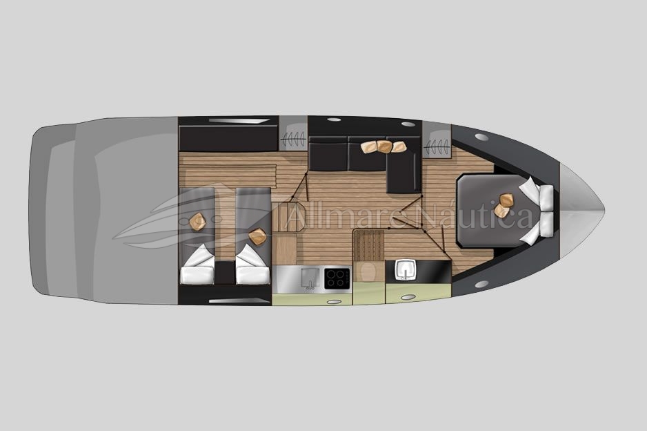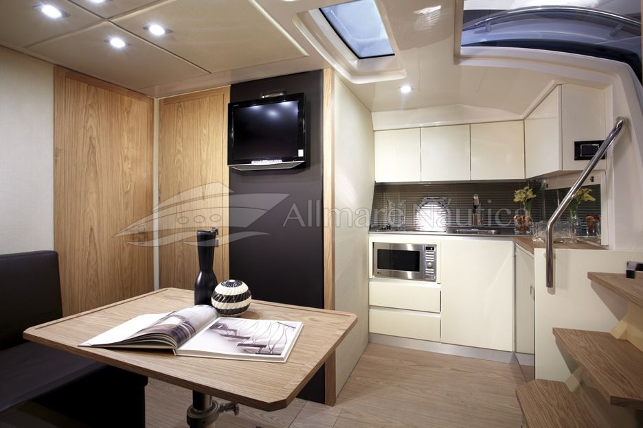 Um dos pontos chave desse barco é a otimização do espaço interno que lhe permite ter duas confortáveis cabines e um espaçoso banheiro. A cozinha completa na versão standart também é destaque no projeto.